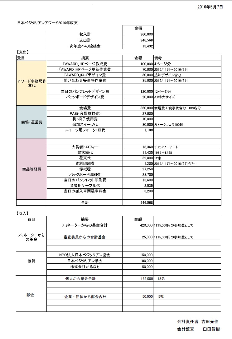 第1回 会計報告(2016年)