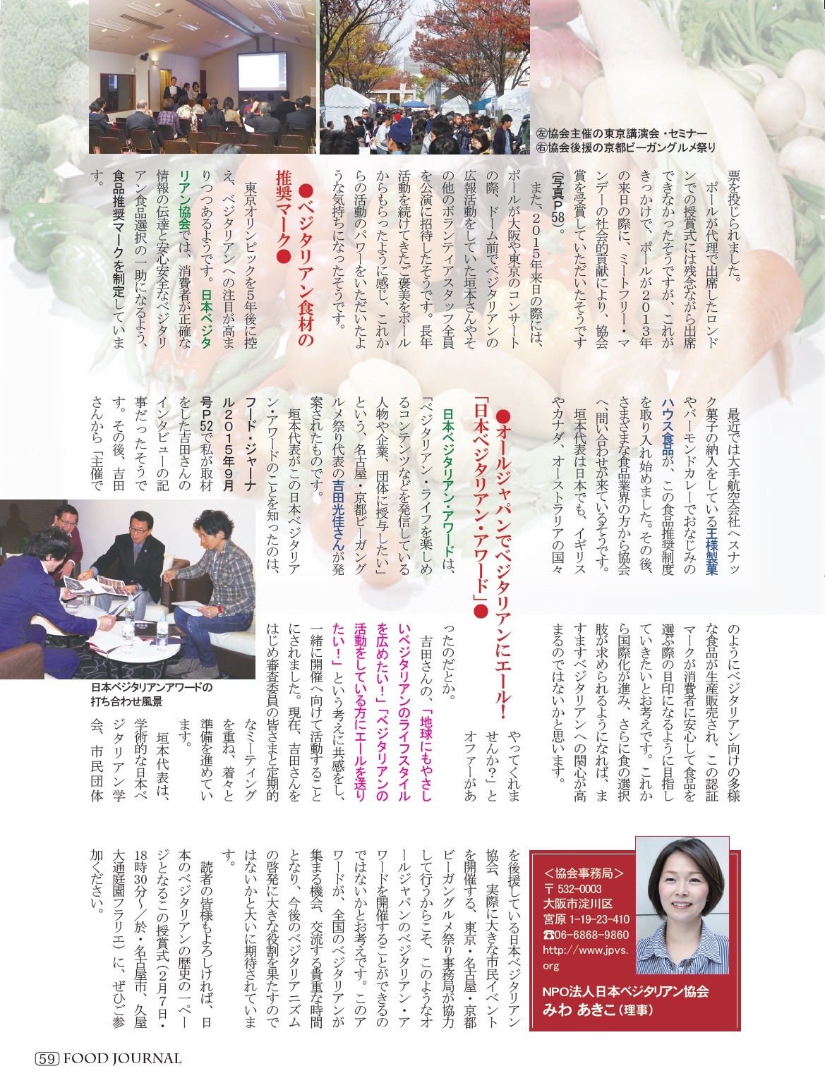 2016/01/15 フードジャーナル1月号「今日は、ベジ気分!」 16/01/15 日本ベジタリアンアワードの誕生エピソードがフードジャーナル1月号「今日は、ベジ気分!」に紹介されました。に紹介されました。