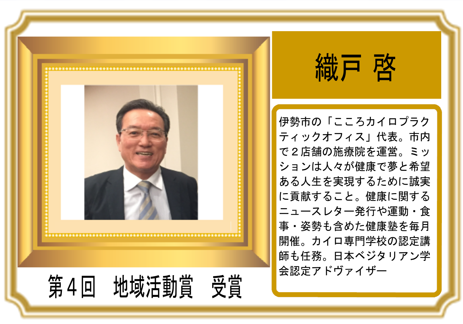 第4回 日本ベジタリアンアワード 地域活動賞 受賞:織戸啓様