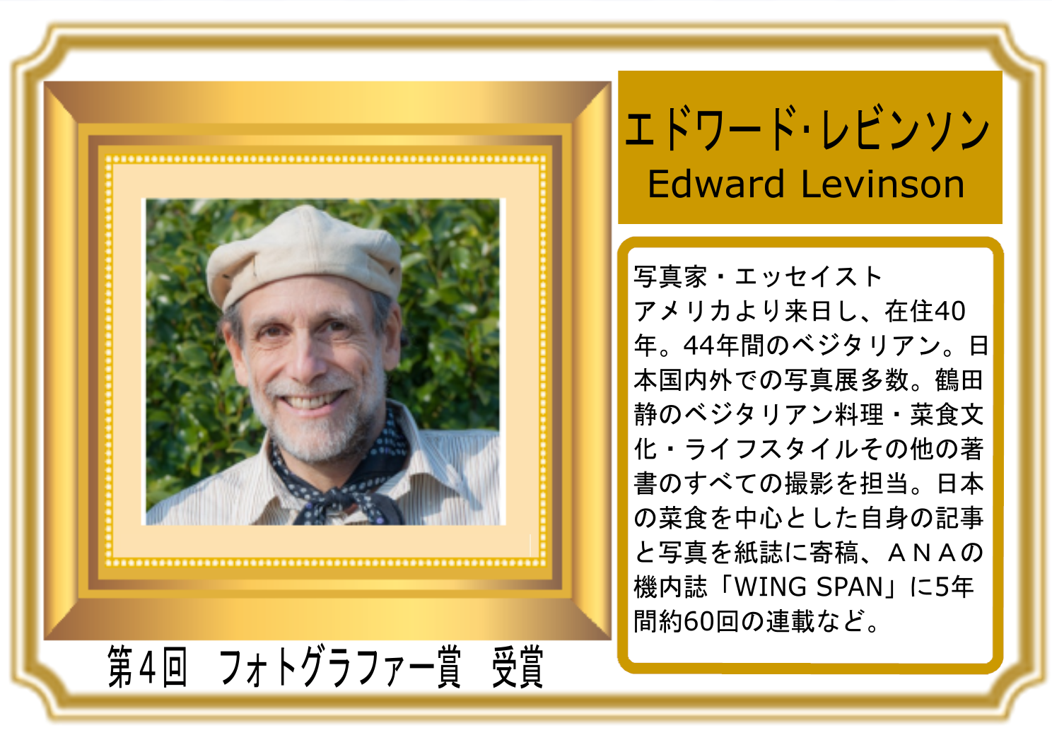 第4回 日本ベジタリアンアワード フォトグラファー賞 受賞:エドワード・レビンソン様